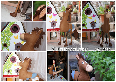 A principios de Junio es el cumpleaños de mi sobrino Artiom. Este año hacía 4 añitos y el primero que celebraba con nosotros. A Artiom le encantan los coches y los caballos. Casi un mes antes le pregunté a su papá y mamá qué podía hacerle pero ellos no supieron cual de los dos proyectos que tenía en mente elegir... así que se lo pregunté a él directamente y eligió el caballo. Estuve buscando y encontré un paso a paso con patrones del caballo Perdigón de Toy Story ¡qué casualidad, para Reyes le habían traído a los personajes de Buzz y Woody! ¡Manos a la obra! Tengo que dar las gracias a Jessica de Running with scissors por este maravilloso tutorial. Os dejo el link por si queréis visitar su página: http://projectsbyjess.blogspot.com.es/, hace sus propios patrones y muchos son gratis.